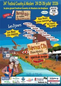 Du 24 au 26 Juillet 2026, aura lieu le 34ème Festival Country et Western, à Barvaux City (6940), Belgique.