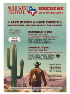 Du 18 au 19 Juillet 2026, aura lieu le *Wild West Festival*, Live Music & Line Dance, Old Time Camp, Western Shops, Food & Drinks, à Bredene (8450), Belgique.
