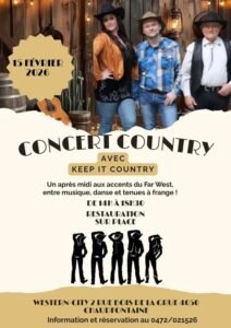 Le Dimanche 15 Février 2026, Après Midi Country Concert , à *Western City Chaudfontaine*, avec *Keep It Country*, de 14h00 à 18h30, 2 rue Bois de la Cru