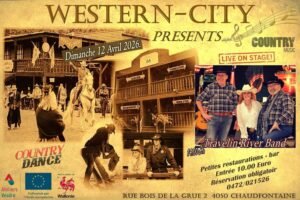 Le Dimanche 12 Avril 2026, Après Midi Country Dance à 14h00, chez *Western City*, avec *Travelin’River Band*, rue Bois de la Grue, à Chaudfontaine (4050) Belg