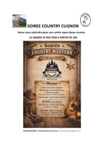 Le Samedi 23 Mai 2026, Soirée Country Western (Repas et Danse), à partir de 18h00, à Cugnon (6880), Belgique.