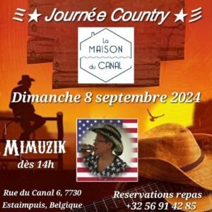 Le Dimanche 08 Septembre 2024, Journée Country music et Dance dès 14h00, avec *MiMuZik*, à la Maison du Canal, 6 rue de Canal, à Estaimpuis (7730), Belg