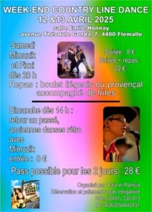 Les 12 et 3 Avril 2025 Week End Country Line Dance avec *MiMuZik et Fizzi*, Salle Emile Honnay, 7, Avenue Théodule Gonda, à Flé