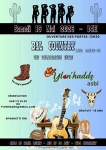 Le Samedi 16 Mai 2026, Après Midi Bal Country Line Dance, à 14h00, Salle Au Soleil Levant, rue du 24 Aout, à Houdemont (6720), Belgique.Samedi