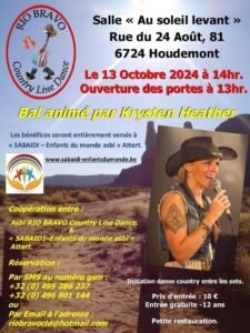 Le Dimanche 13 Octobre 2024, Après Midi Country Music et Dance, chez *Rio Bravo Country Line Dance*,  à 14h00, avec un Concert de *Krysten Heather*, Salle *Au Soleil Levant*, , rue du 24 Aout, 81, à Houdemont (6