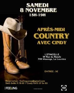 Le Samedi 08 Novembre 2025, Après Midi Bal Country avec *Cindy*, de 15h00 à 19h00, à L’etin