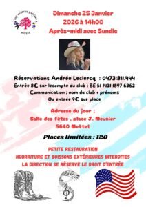 Le Dimanche 25 Janvier 2026, Après Midi Country avec Concert de *Sundie*, à 14h00, Salle des Fêtes , Place J.Meunier, à Mettet (5640), Belgique.