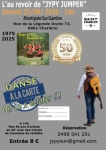 L’au Revoir de *Jypy Jumper*, (50 ans d’artiste) , à 14h00, rue de la Légende Dorée 72, à Montignie sur Sambre, Charleroi (6061), Belgique.