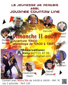 Le Dimanche 11 Aout 2024, Journée Country, avec Workshops et Concert , à partir de 10h00, à Perbais (1457), Belgique.