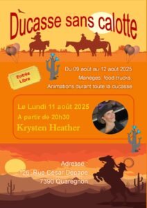 Le Lundi 11 Aout 2025, Soirée Country avec Concert de *Krysten Heather*,à 20h30, à la Ducasse sans Calotte, 126 rue César D