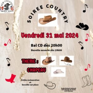 Le Vendredi 31 Mai 2024, Soirée Country cd , dès 20h00, *Thème Chapeau*, Ecole Robert Hainard, 120, Chemin de Saule, à Bernex (1233), Suisse.