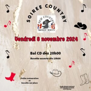 Le Vendredi 08 Novembre 2024, Soirée Country des *New Country Smokin’Boots*, à 20h00, Ecole Robert Hainard, 120, Chemin de Saule, à Bernex (1233) Suisse.